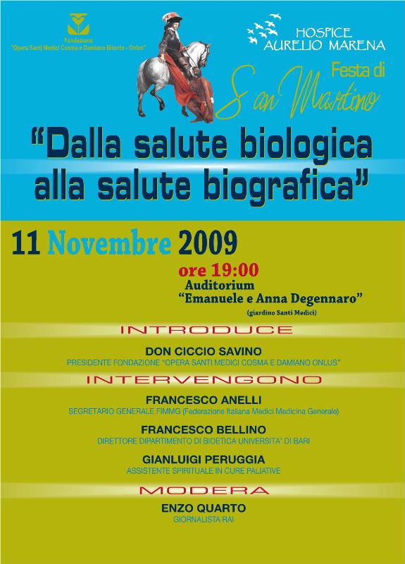 Il giorno 11 novembre 2009 si terrà la giornata dedicata alle Cure Palliative. La Fondazione