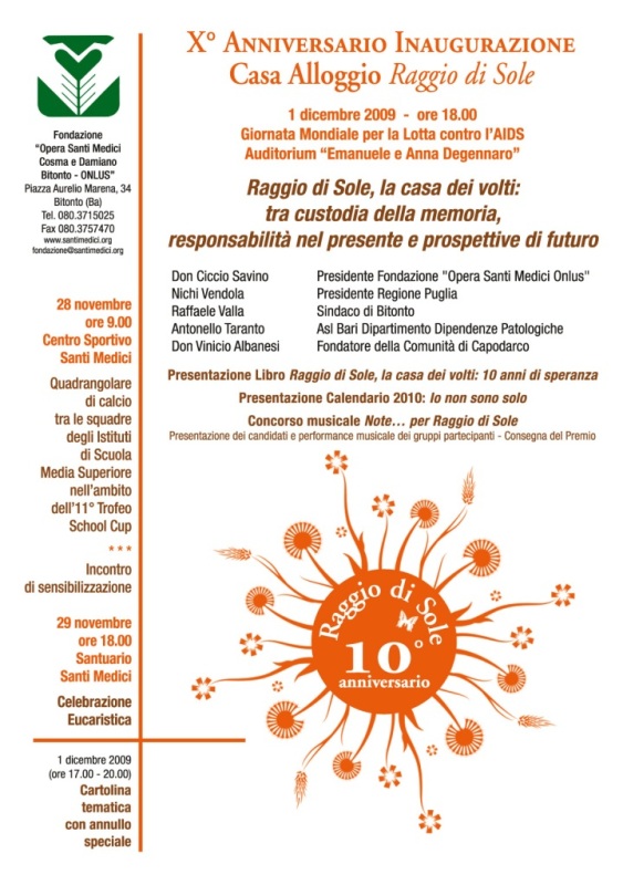 MARTEDI’ 1° DICEMBRE 2009 X ANNIVERSARIO CASA ALLOGGIO ‘RAGGIO DI SOLE’ Durante la manifestazione saranno