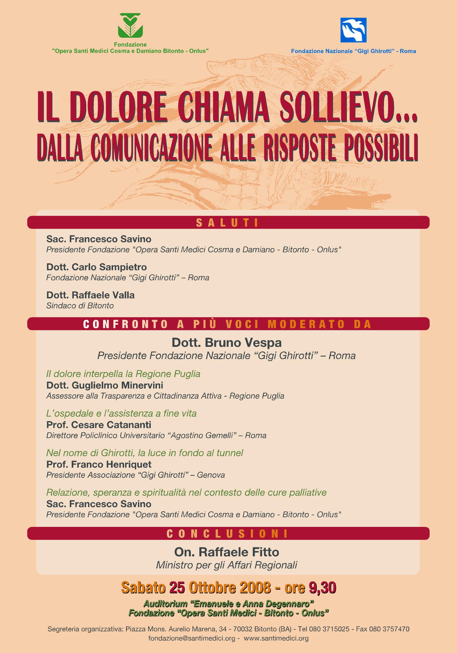 Il giorno 11 novembre 2008 si terrà la giornata dedicata alle Cure Palliative. Ad un