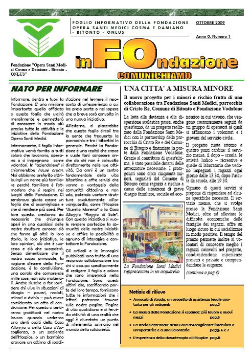 È il titolo diquesto nuovo foglio informativo che nasce nel mese di ottobre. Un notiziario